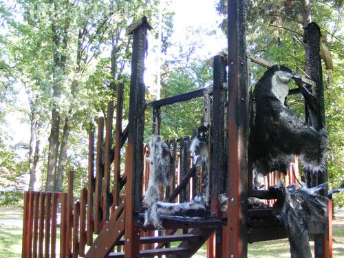 Flacarile au curpins locul de joaca, iar fumul negru si gros a acoperit zona. Pana in acest moment nu se stie din ce cauza a izbucnit incendiul.