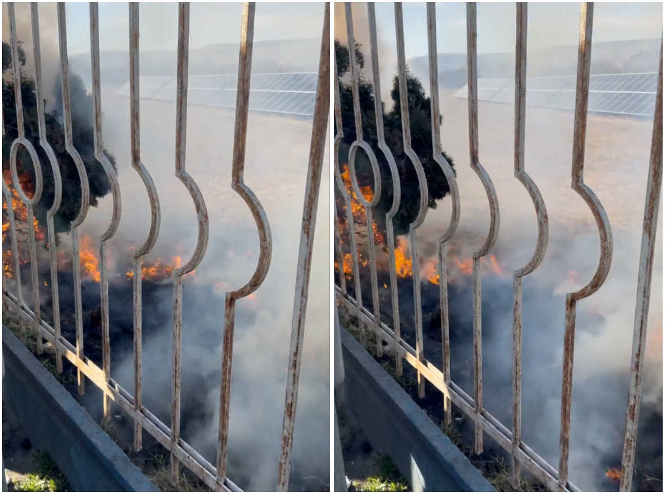 Pe fundalul imaginilor surprinse la fața locului, se observă panouri fotovoltaice, care ar putea fi în pericol în cazul în care incendiul nu este ținut sub control. Pompierii au fost mobilizați pentru a interveni și a preveni extinderea focului spre aceste instalații sau spre alte zone locuite.
