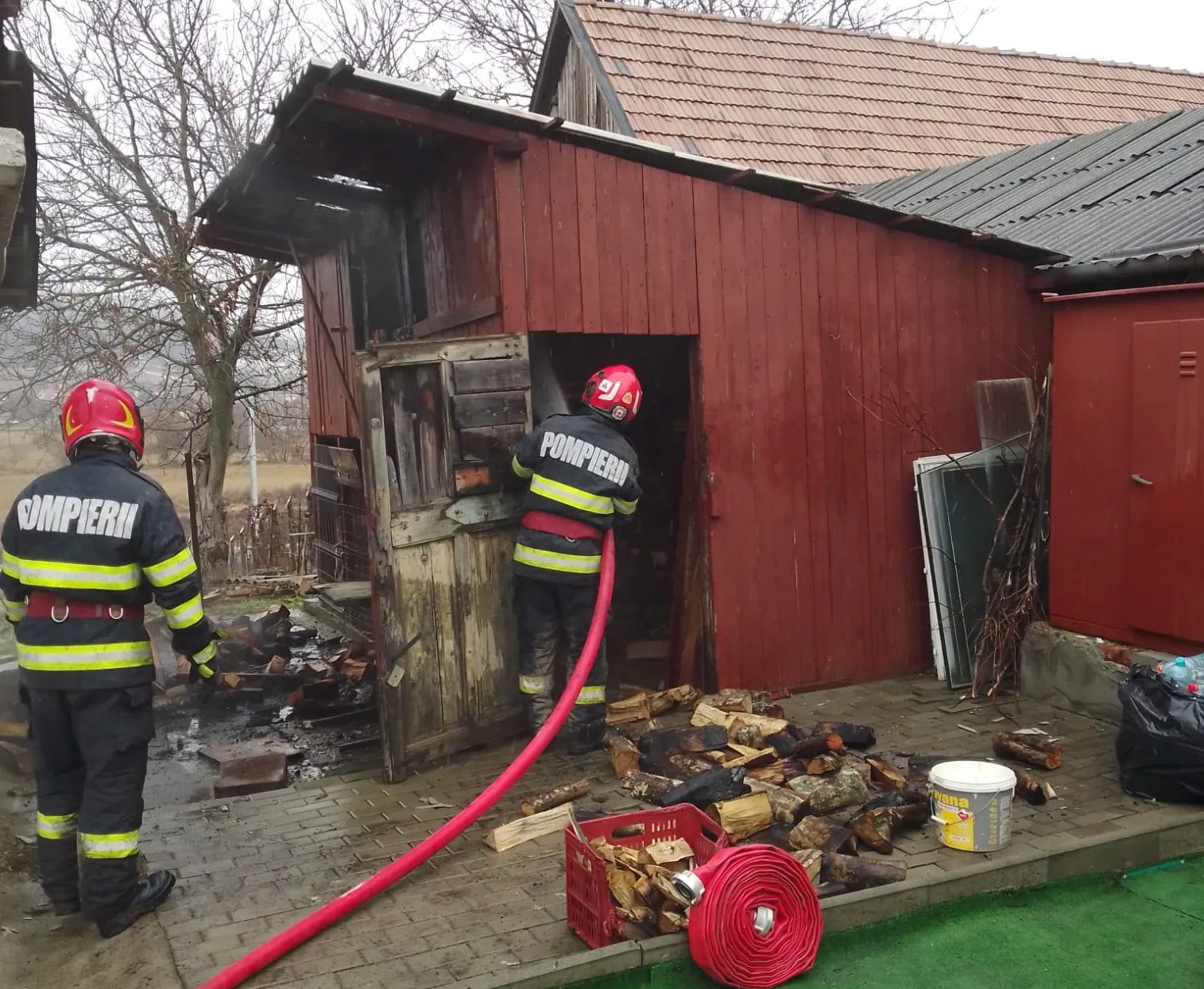 Incendiu la o anexă gospodărească plină cu lemne din Cluj. Flăcările au pornit de la jarul nestins / Pompierii au intervenit de urgență