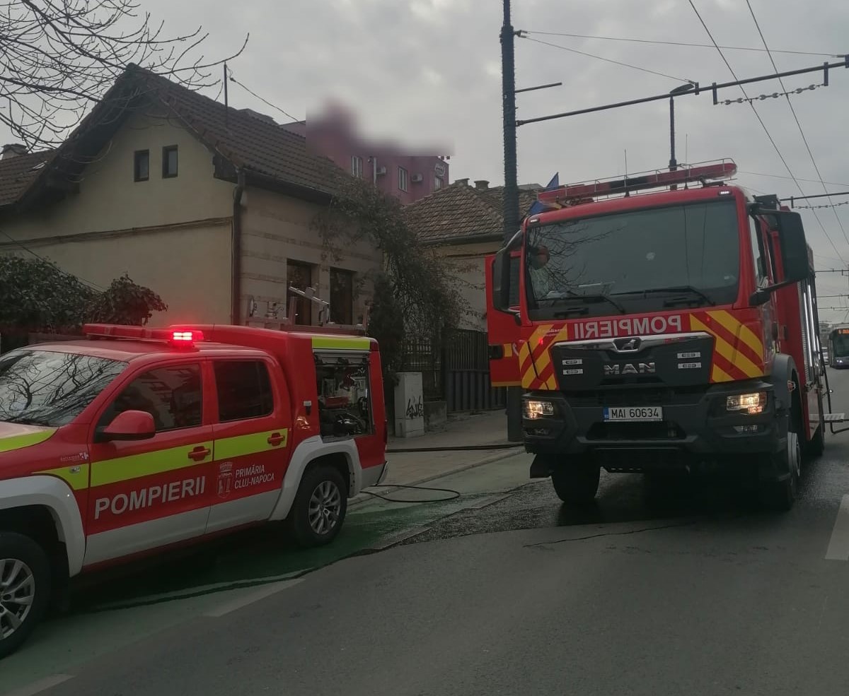 „Pompierii din cadrul Detașamentului 2 Cluj-Napoca intervin în aceste momente pentru a stinge un incendiu izbucnit în jurul coșului de fum, la o casă situată pe Calea Mănăștur.