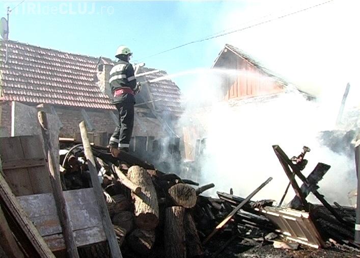 Pompierii dejeni intervin la stingerea unui incendiu izbucnit in jurul orei 14.00 la o gospodarie din localitatea Santioana.