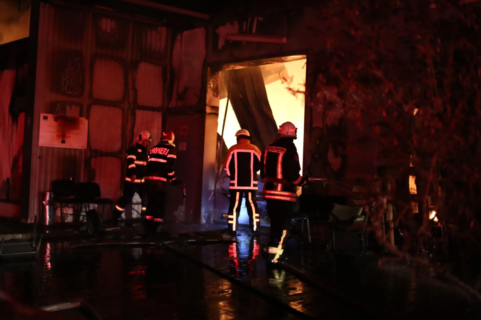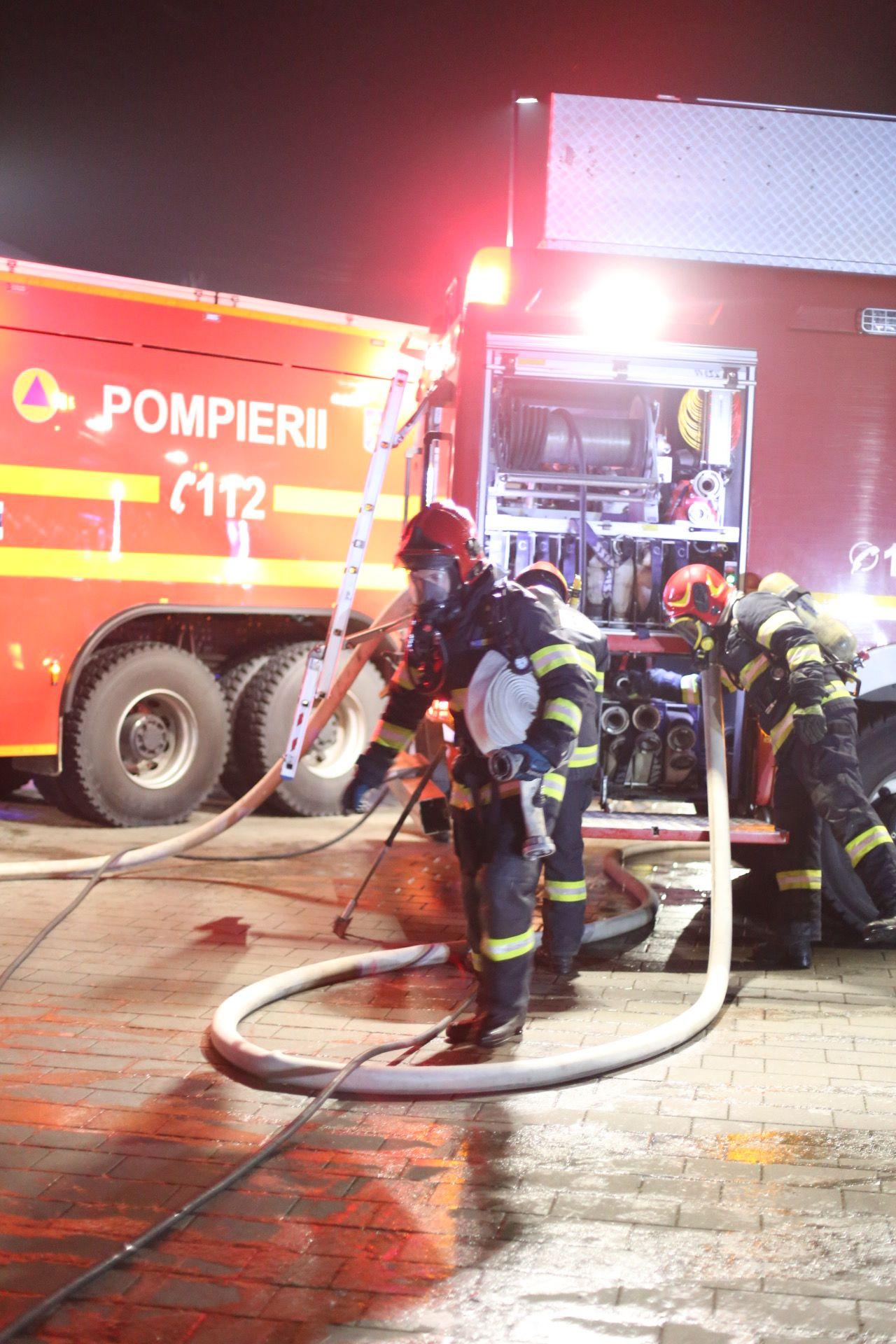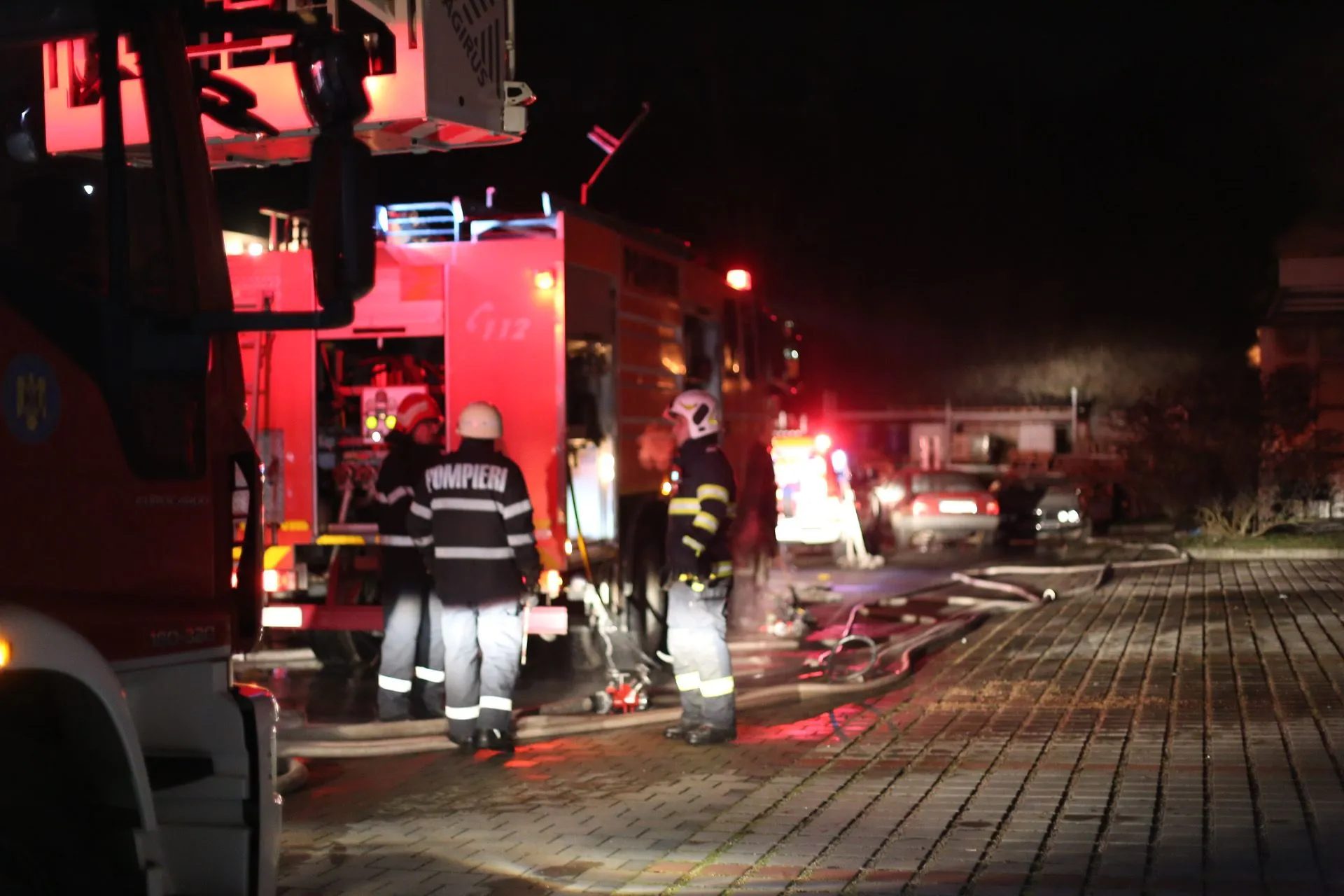 Focarele incendiului au fost limitate, astfel încât nu mai există pericol de propagare la vecinătăți și se acționează în continuare pentru lichidarea acestora.
