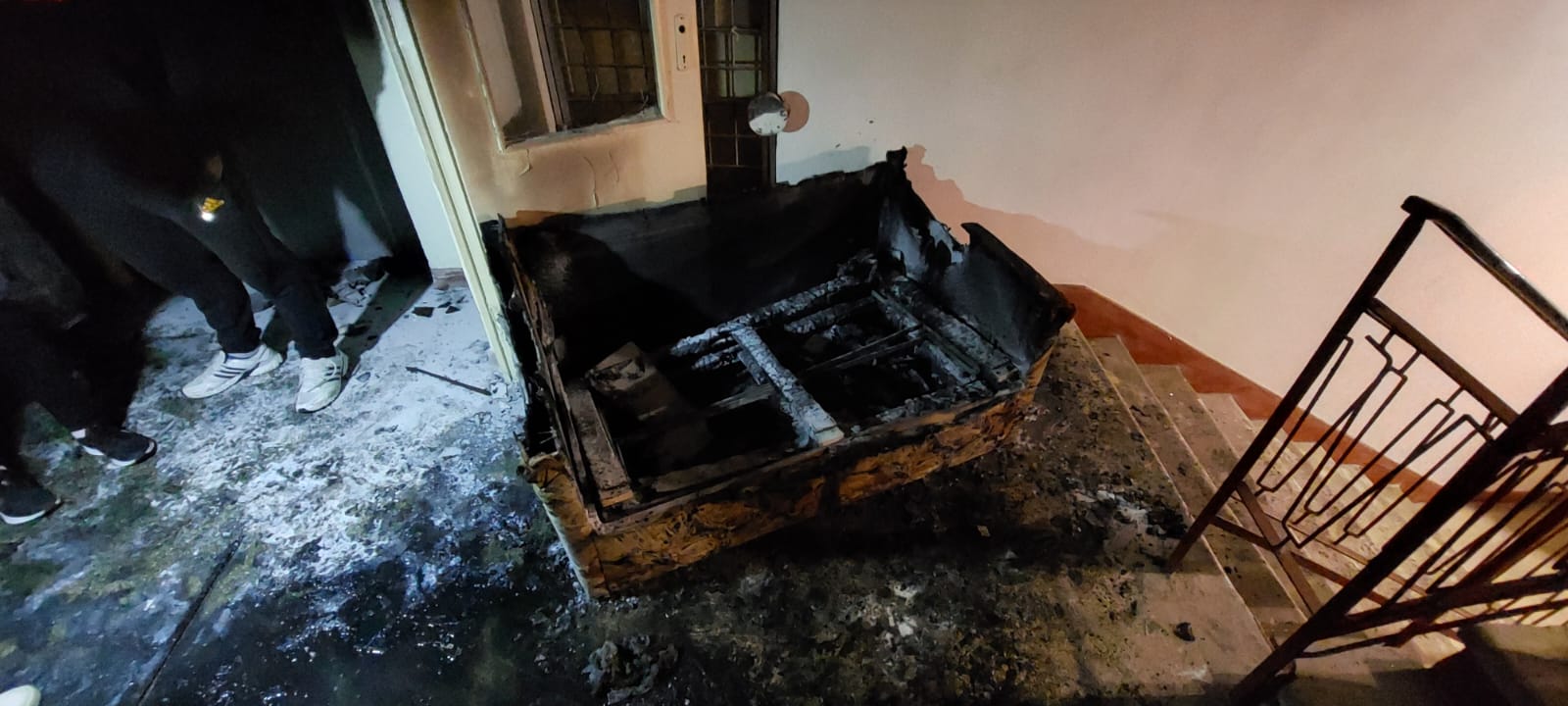 „La fața locului s-au alocat două autospeciale pentru stingerea incendiilor, o autoscară și, preventiv, două echipaje SMURD. În momentul sosirii acestora la fața locului au găsit o canapea, care era poziționată pe scara blocului, cuprinsă de flăcări.