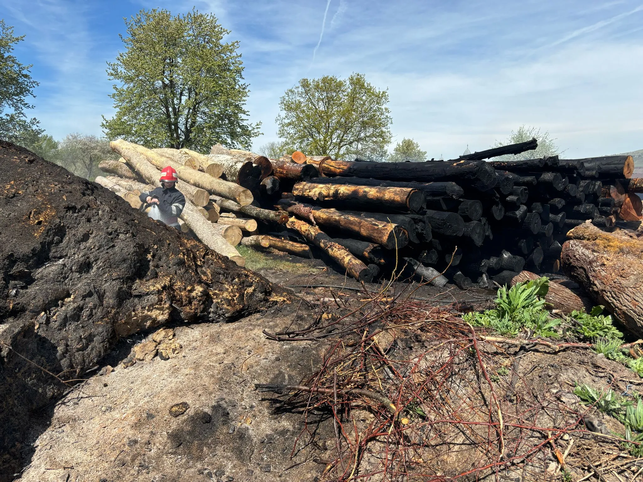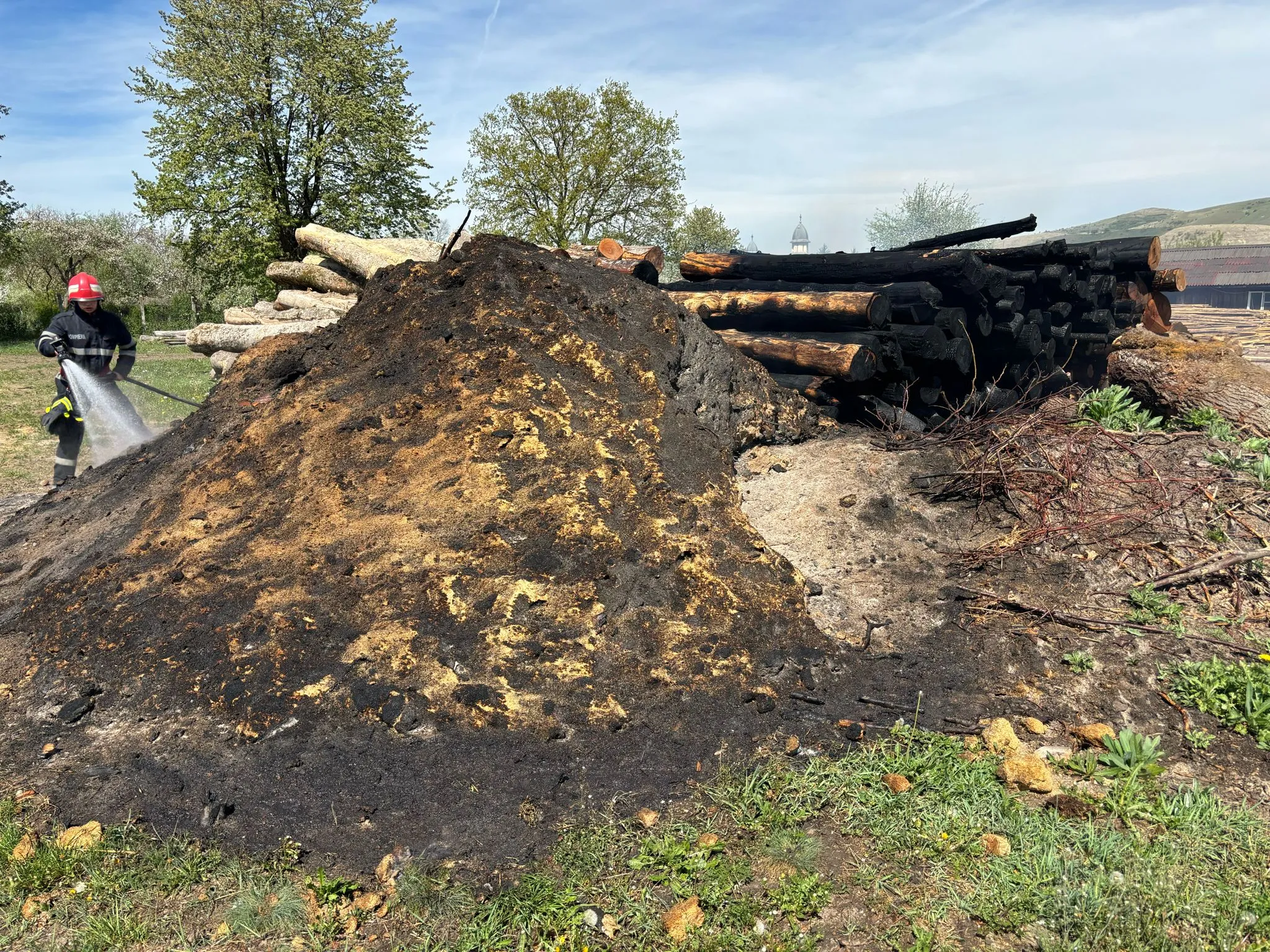 „Incendiul se manifestă la un depozit de lemne, de aproximativ 80 mc.