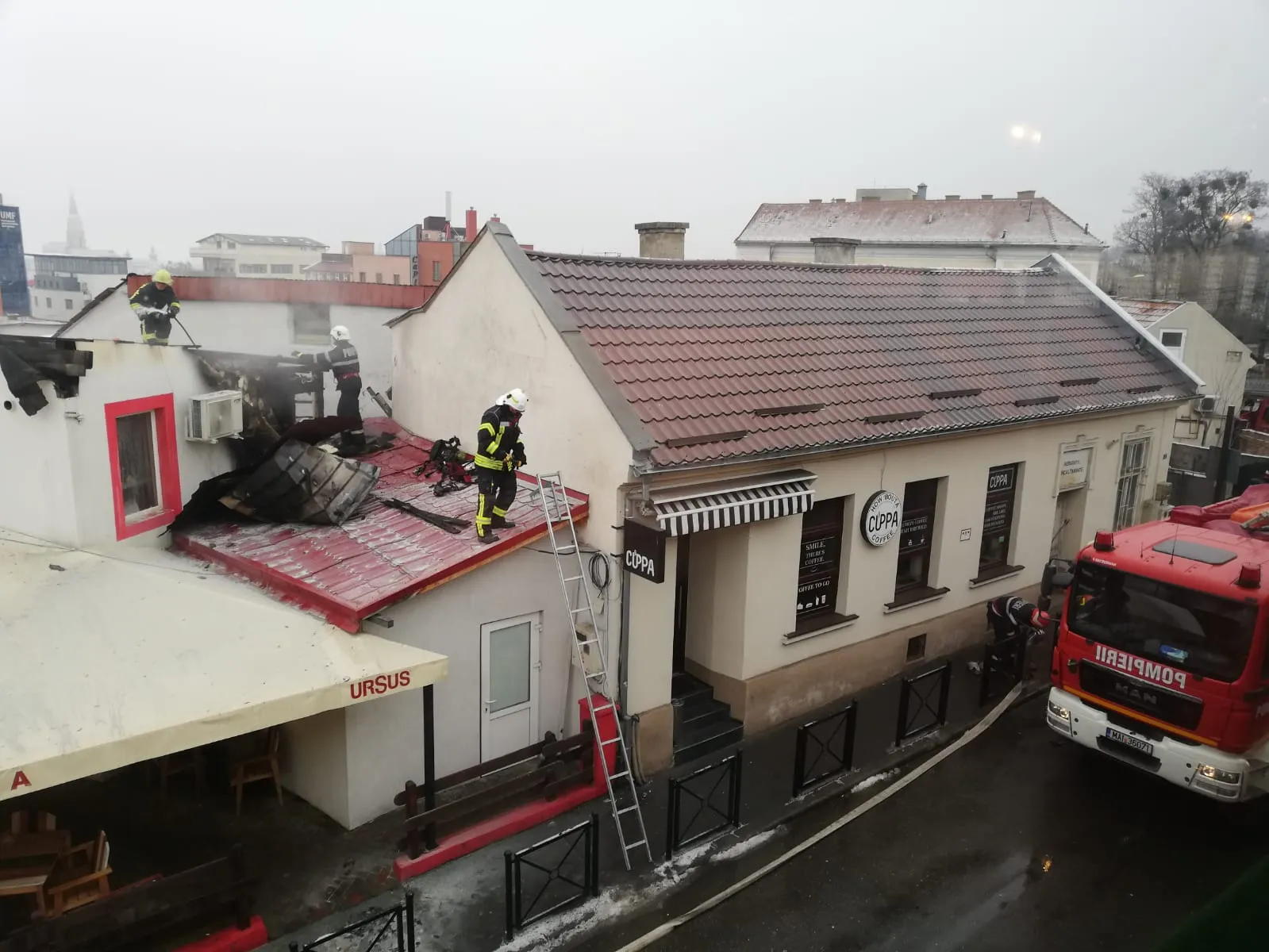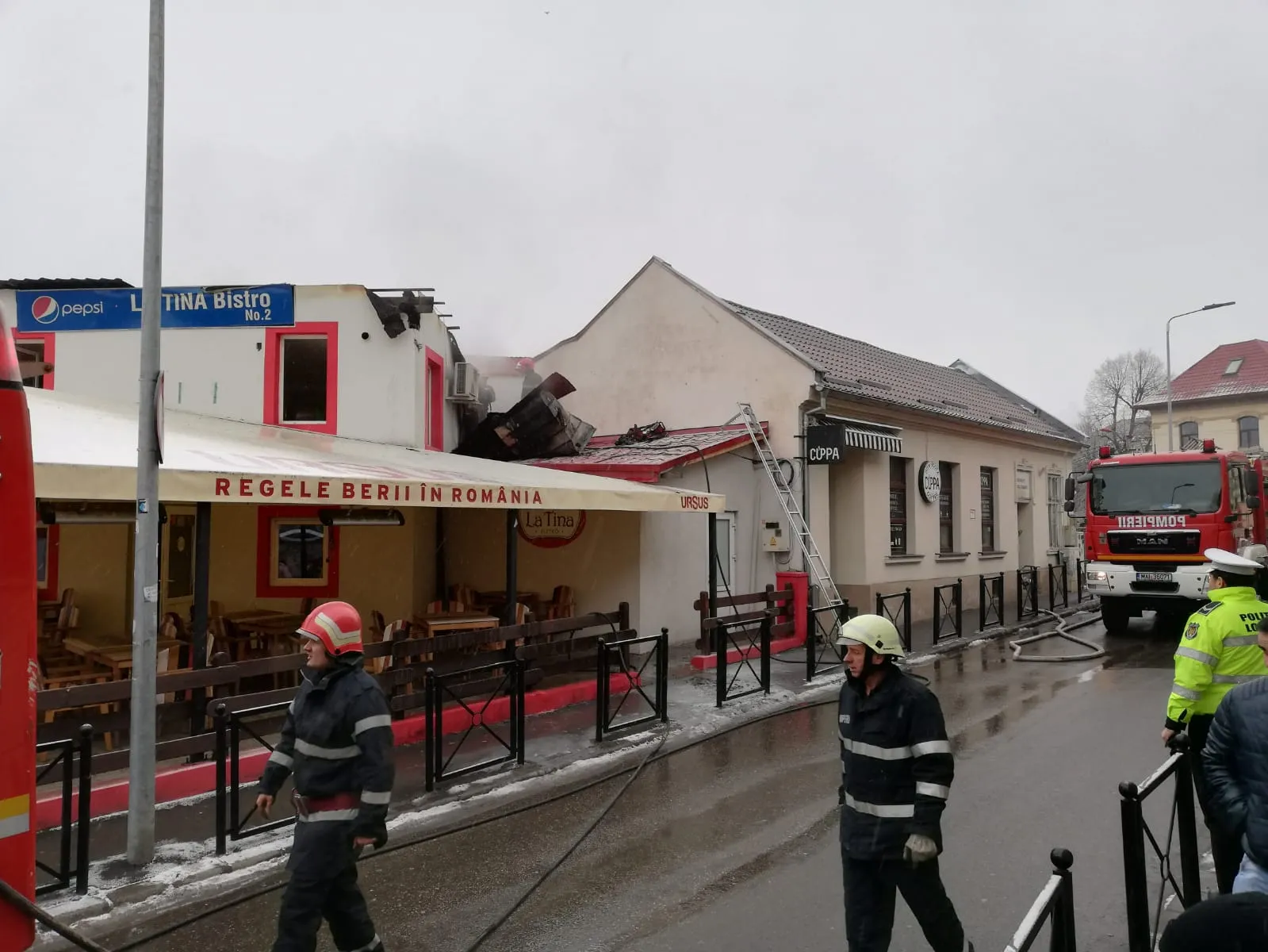 Flăcările s-au manifestat la acoperișul localului și sunt sub control în aceste momente.