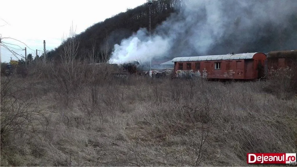 Un incendiu a avut loc, sâmbătă după-amiază, în jurul orei 16.40, în apropiere de gara CFR din Dej, unde un vagon dezafectat tras pe o linie moartă a luat foc.