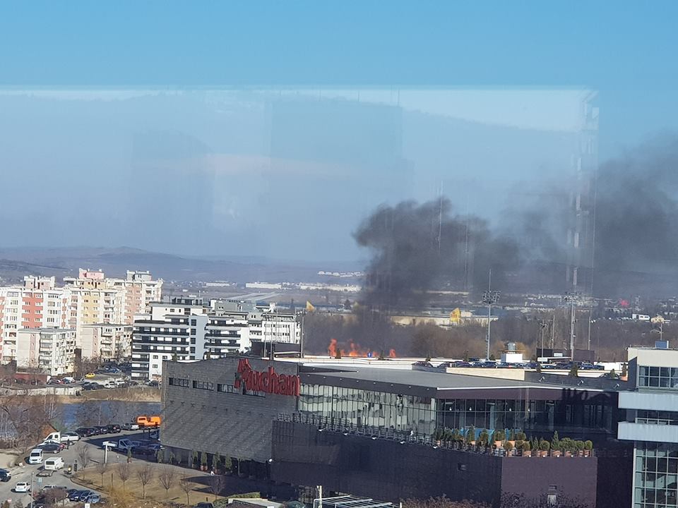 Incendiul a fost localizat pe strada Galați, în spatele Iulius Mall Cluj și nu s-a extins.