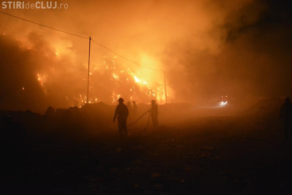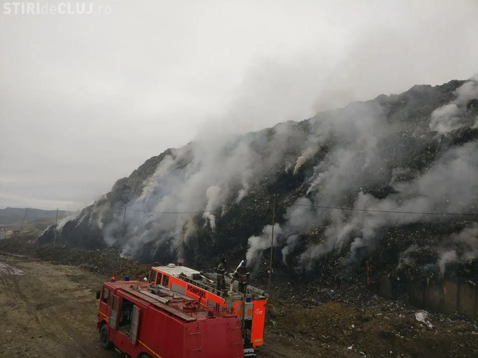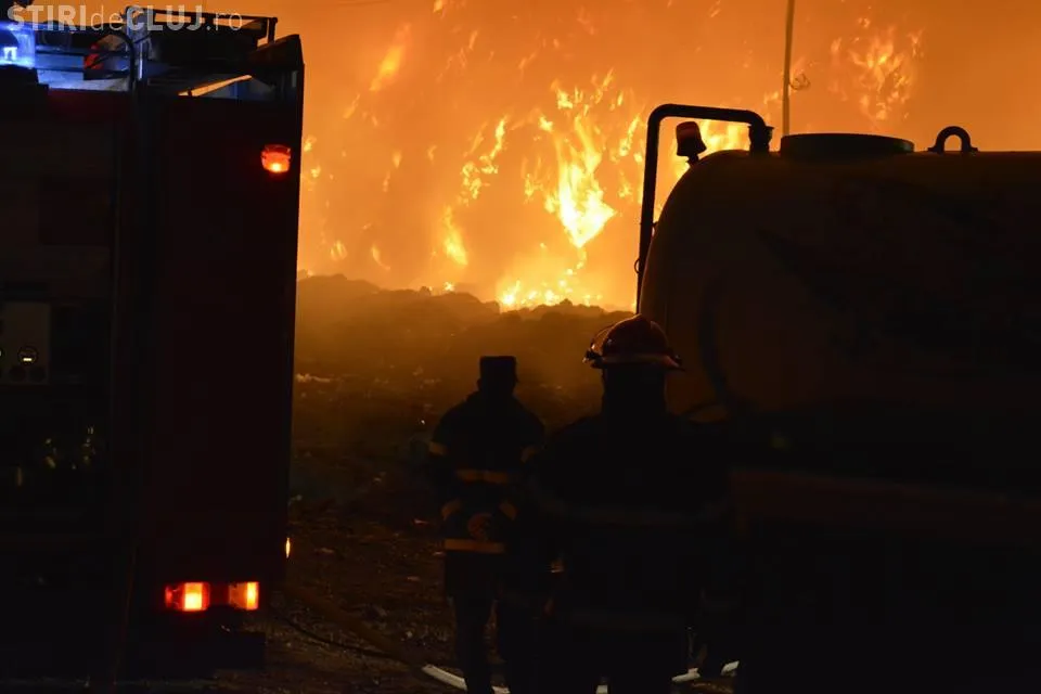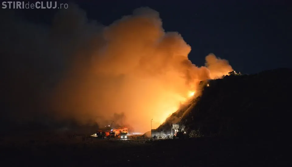 ”Focarele de incendiu cu flăcări deschise de la suprafața deșeurilor au fost lichidate pe parcursul nopții, însă este necesară eliminarea focarelor ce ard mocnit în masa deșeurilor pe suprafața afectată”, informează ISU Cluj.