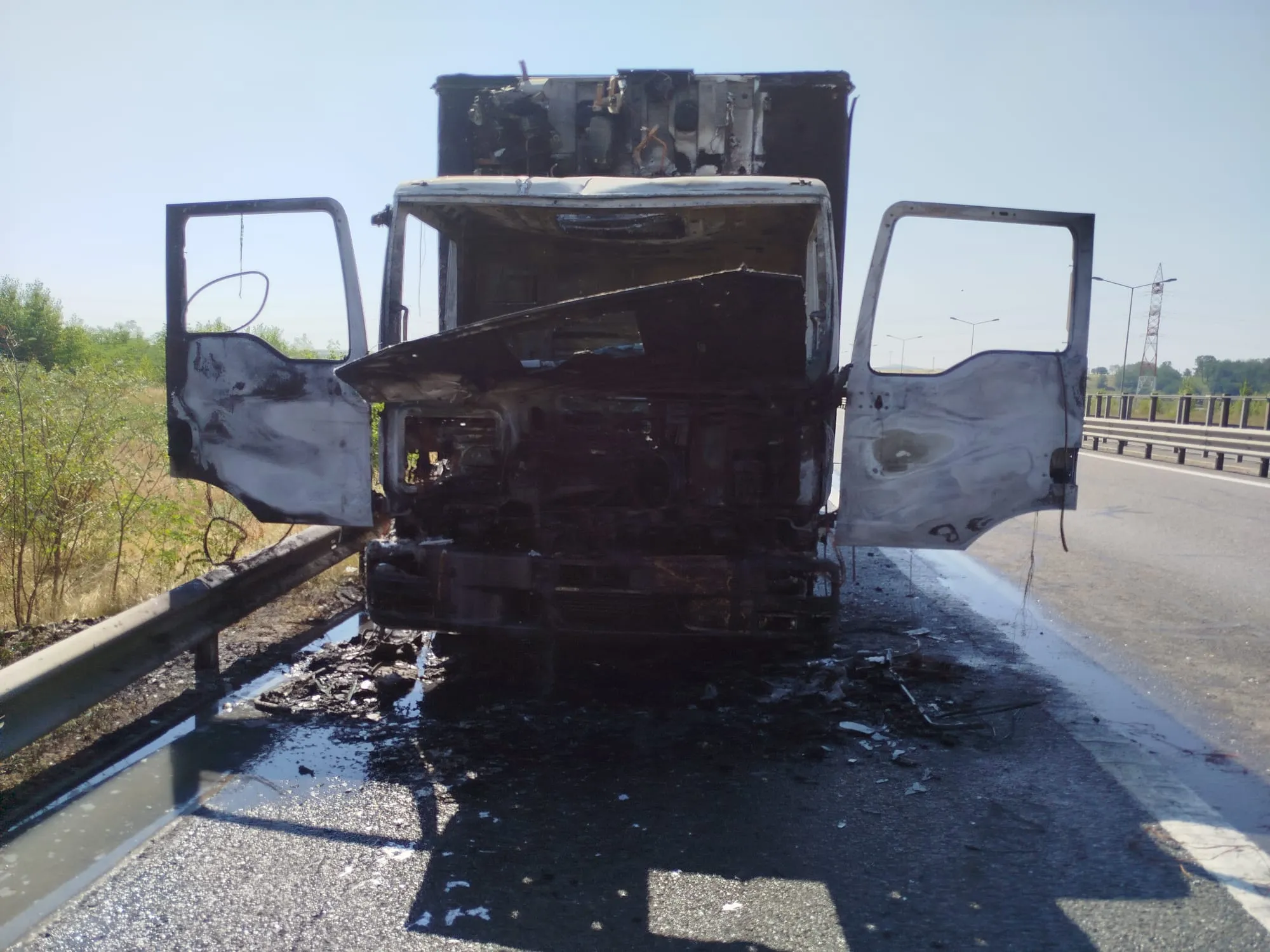 „Intervenție pentru stingerea unui incendiu care s-a manifestat la un autocamion pe autostrada A3.