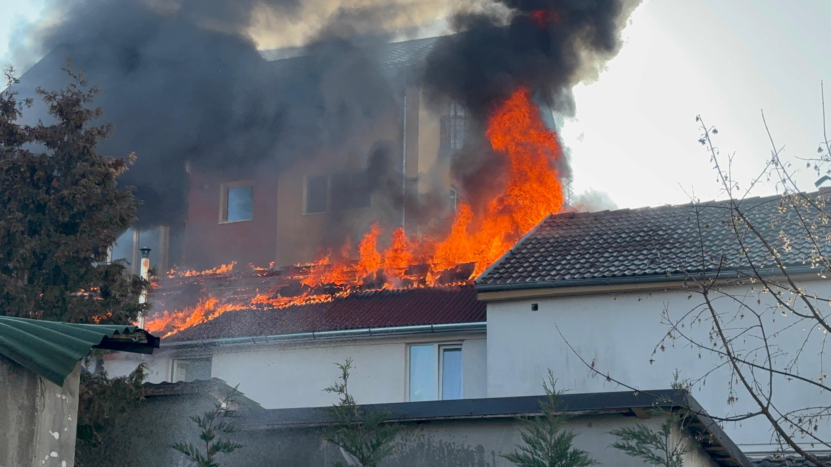 ,,Incendiul se manifestă la acoperis pe o suprafață de aproximativ 100 de metri pătrați, fiind localizat. Acționează 3 autospeciale și autoscara de la Detașamentul 2 Cluj-Napoca, respectiv un echipaj de la Detașamentul 1 Cluj-Napoca. Preventiv a fost trimisă o ambulanță SMURD, însă din fericire nu există persoane care să solicite îngrijiri medicale.", tranmsite ISU Cluj.