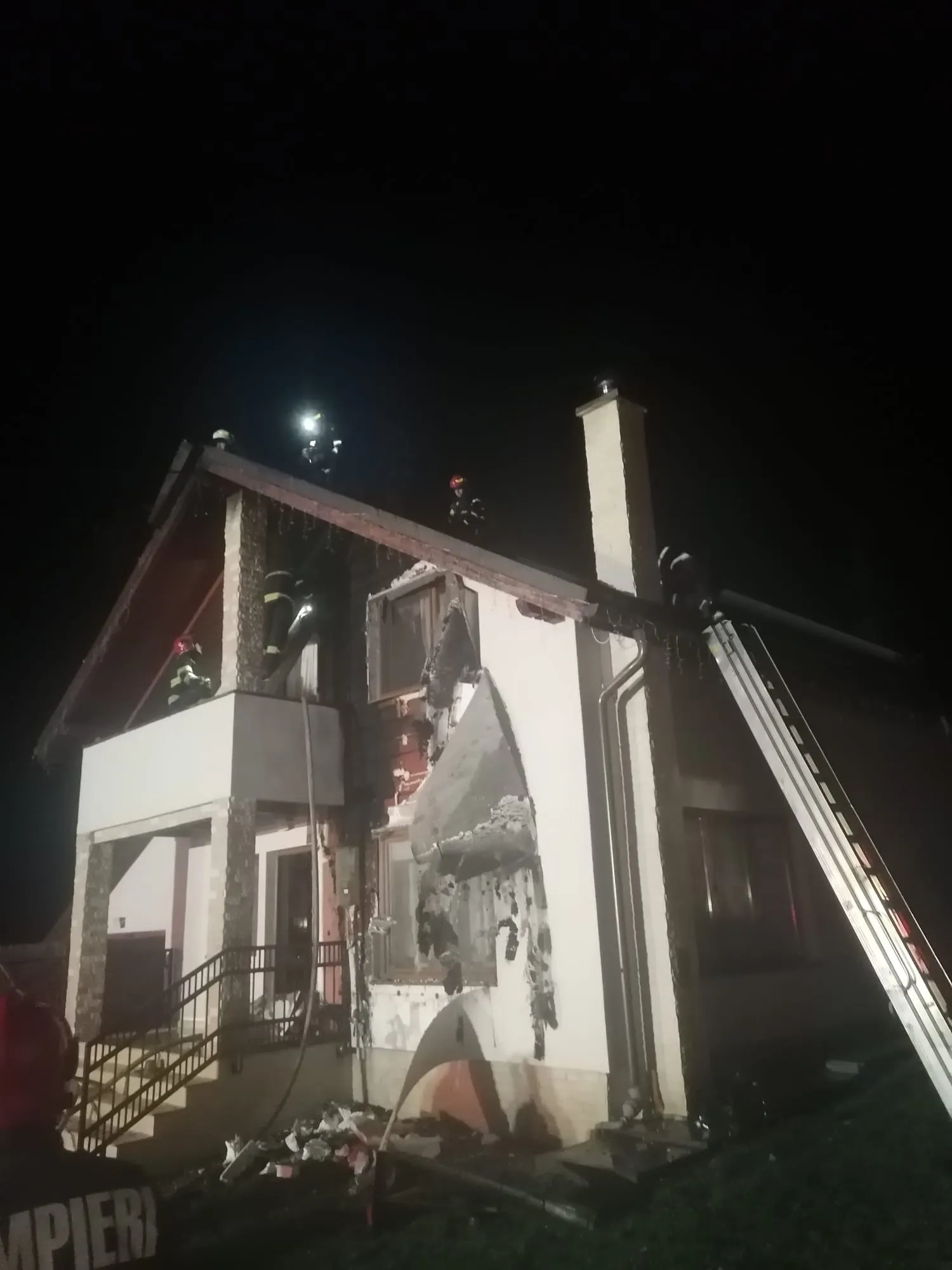 La sosirea echipajelor, flăcările cuprinseseră acoperișul din lemn al casei, pe o suprafață de aproximativ 100 de metri pătrați, iar focul afectase și fațada locuinței pe circa 30 de metri pătrați. Pompierii au acționat pentru limitarea propagării incendiului și lichidarea acestuia.