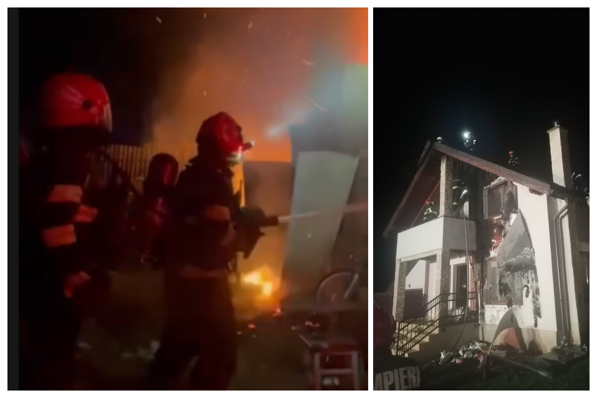 Incendiu puternic la o casă din Deușu, județul Cluj. Pompierii au intervenit în toiul nopții