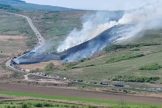 „Făcările care au cuprins autovehiculul au fost lichidate, însă echipajele care acționează la fața locului se confruntă cu un incendiu violent de stufăriș, ce se propagă cu repeziciune.