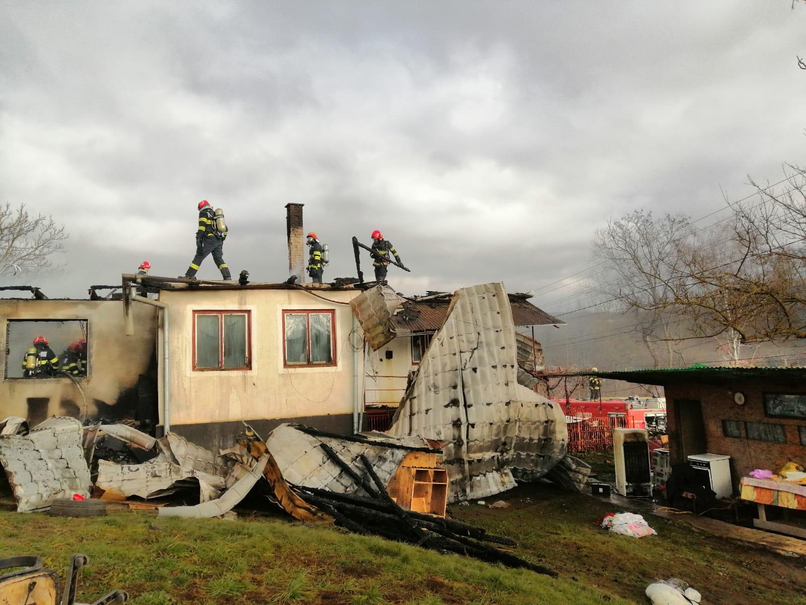 Focul a distrus complet acoperișul, fiind afectate și alte camere. Un bărbat de 60 de ani a fost rănit, având arsuri pe față și mâini.