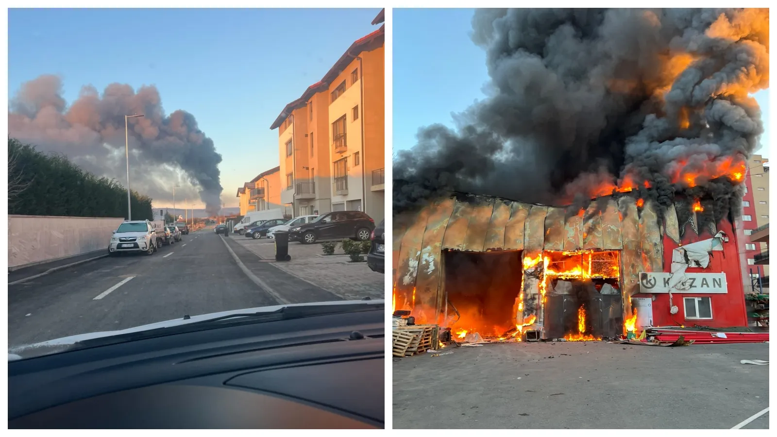 Incendiu puternic pe Calea Baciului, Cluj-Napoca! Arde depozitul Kazan. Oamenii s-au alertat - VIDEO / FOTO
