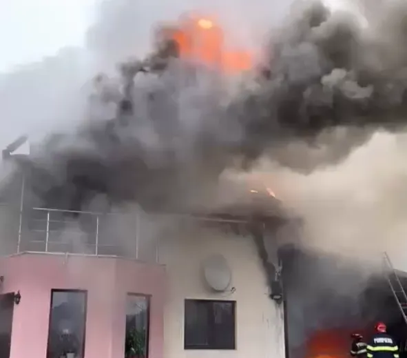 Pompierii au reușit să lichideze incendiul pornit, cel mai probabil, de la o afumătoare. Cauciucurile dintr-o magazie au favorizat extinderea flăcărilor care au cuprins acoperișul casei și trei camere din interior.