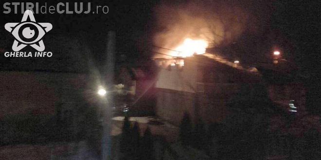 Incendiu violent la o locuință din Gherla. Mai multe persoane se aflau în casă VIDEO