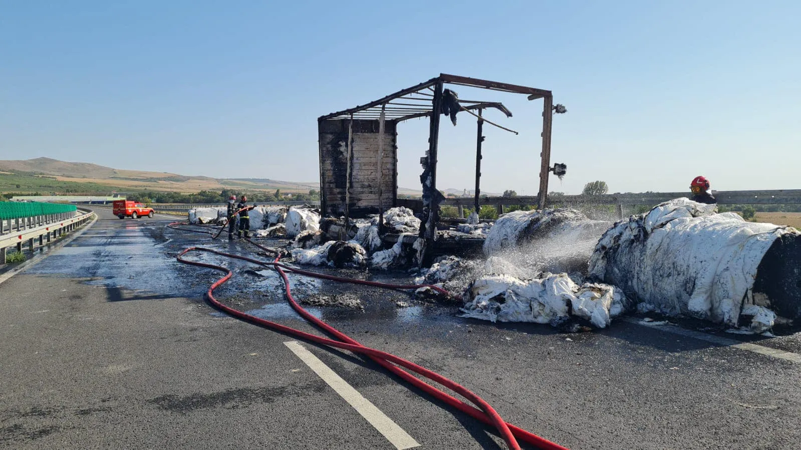 Un autocamion a luat foc joi, 5 septembrie pe autostrada A10, pe sensul Turda-Sebeș.