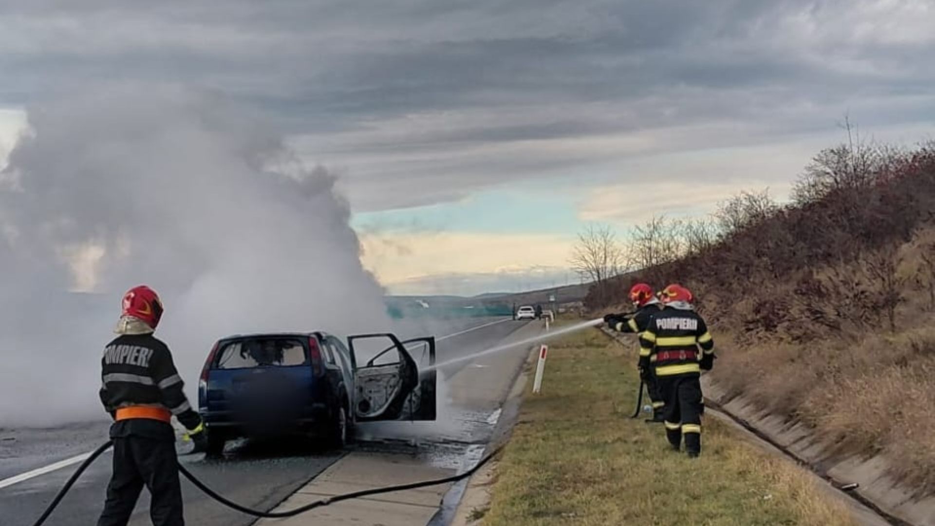 O mașină a fost cuprinsă de flăcări pe autostrada A3, pe sensul Turda - Gilău, în urmă cu câteva momente. Intervenția rapidă a pompierilor din cadrul Detașamentului Turda a prevenit extinderea incendiului și posibile tragedii.