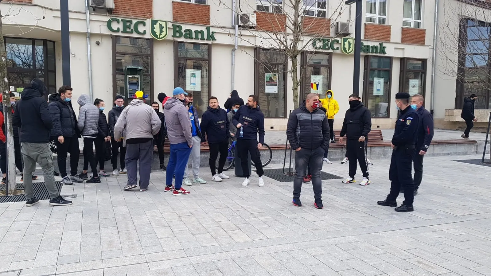 La proteste participă circa 50 de oameni, din care jumătate sunt din galeria U Cluj.