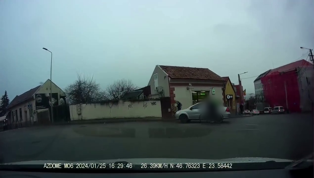 Cu siguranță șoferul a constatat în ultima clipă că a greșit încadrarea, dar nu s-a asigurat că nu vine nimeni din lateral. O altă încălcare a legii este faptul că nu a oprit pentru a vedea dacă biciclistul este în regulă. Identificarea acestuia o poate face poliția rutieră, cu ajutorul camerelor stradale.
