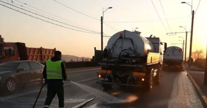Incident neplăcut pe strada Bună Ziua din Cluj-Napoca. Un șofer a fost stropit de un camion care spăla strada: „Ca norocul aveam geamurile închise”