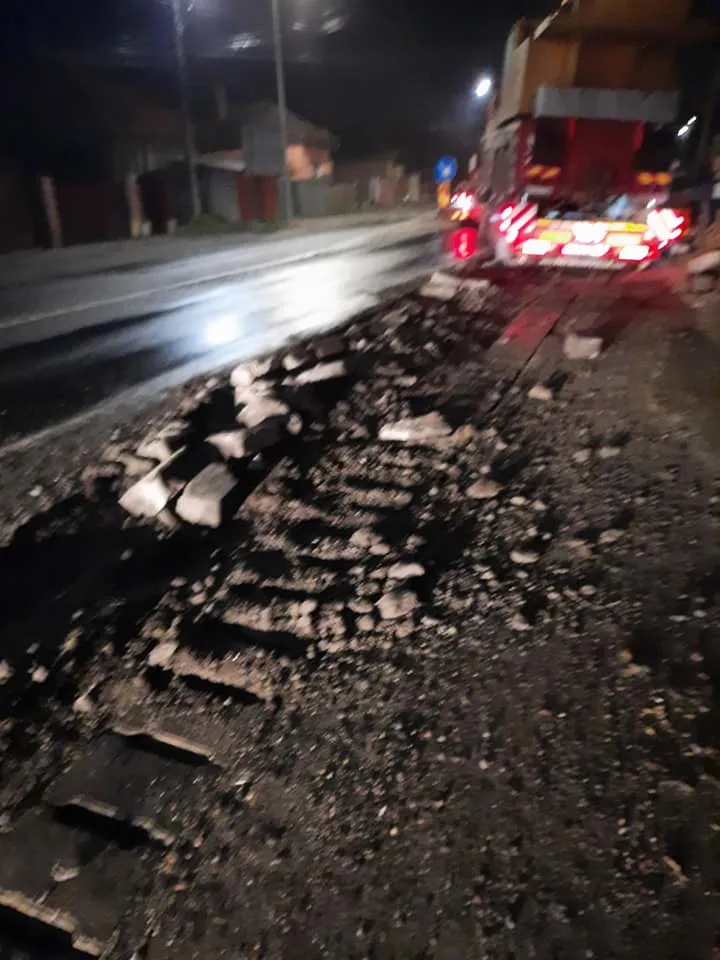 Traficul pe DN1 E60 a fost afectat azi noapte, pe raza comunei Căpușu Mare, după ce un transport agabaritic a ieșit de pe drum și și-a tăiat roțile, blocându-se.