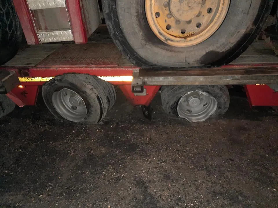 Se pare că trailerul a ieșit prea mult în afara drumului, pentru a pute trece de un separator de sensuri, iar o parte dintre roți au fost tăiate.