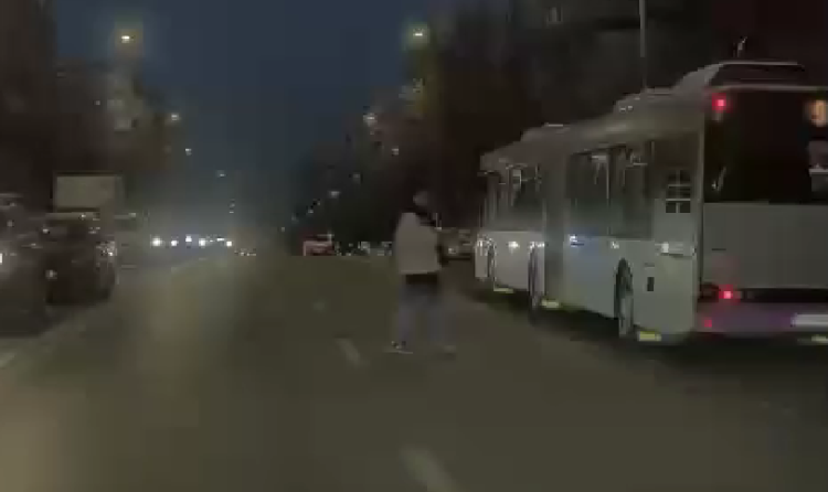 Camera de bord a unui participant la trafic a surprins momentul în care bărbatul se ,,strecoară” cu atenție printre mașini. Cu toate că existau șanse ca această întâmplare să se termine printr-o tragedie, bărbatul pare că și-a menținut calmul și nici măcar nu s-a grăbit să treacă strada cât mai rapid. Filmulețul a fost publicat pe o rețea de socializare iar oamenii au discutat pe marginea acestuia: