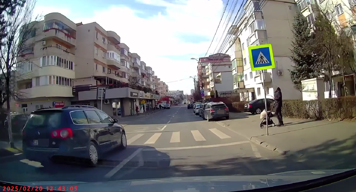Din fericire, părintele a fost „pe fază” și nu a știut să aștepte. Din spatele mașinii care filmează vine cu viteză un alt clujean, care trece fără să se asigure dacă ies alte autovehicule din parcarea din stânga sau dacă sunt oameni la trecerea de pietoni. Acest șofer nu doar că este prea grăbit pentru a opri la trecerea de pietoni, se află în așa grabă că îi depășește pe contrasens pe cei care dau prioritate pietonilor.
