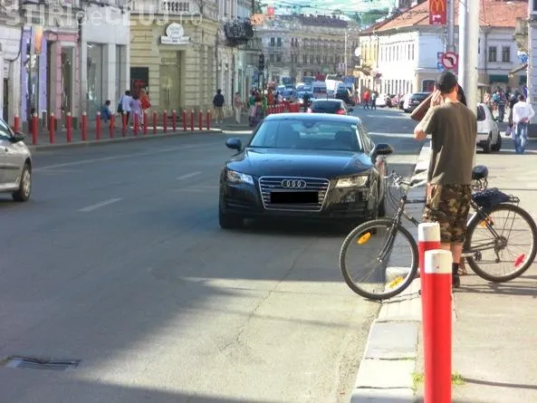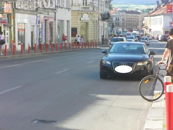 Un clujean şi-a parcat maşina, marca Audi, în centrul Clujului, miercuri, pe strada Regele Ferdinand.