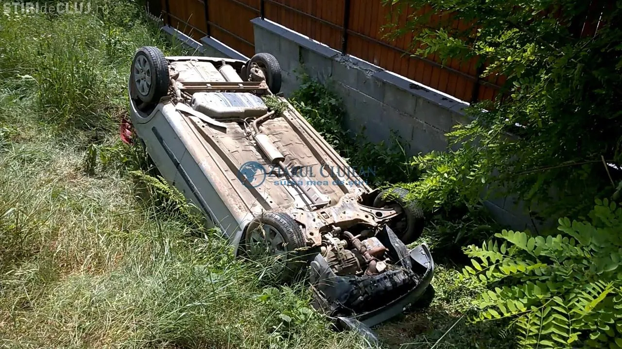 INCONȘTIENȚĂ PURĂ! Un clujean de 18 ani, beat la volan și fără permis, s-a răsturnat cu mașina într-o curte VIDEO