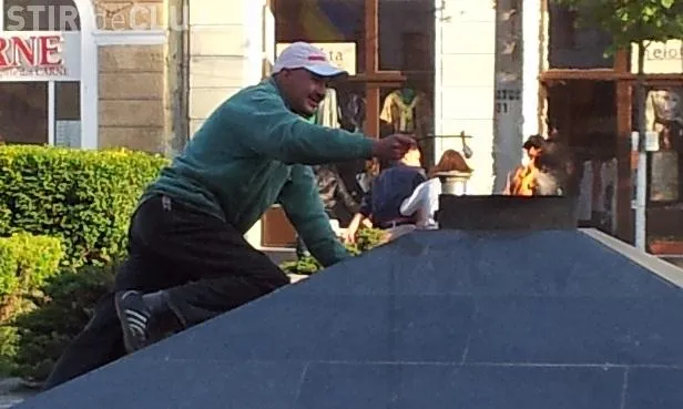 INCREDIBIL! Un barbat isi prajeste o pulpa de pui la "Flacara vesnica" din Piata Mihai Viteazu - CLICK FOTO