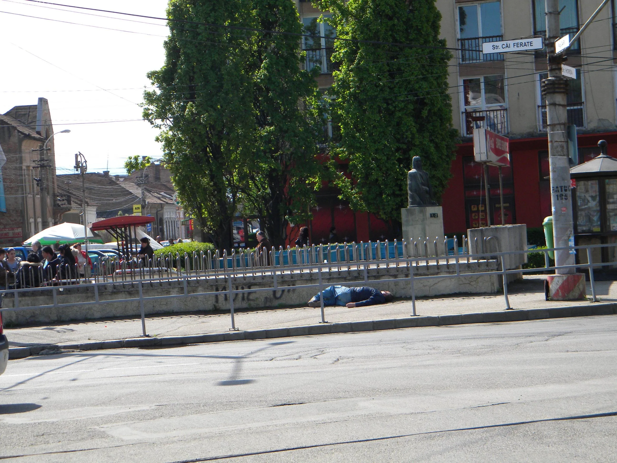Un barbat a zacut intins pe trotuar in Piata Garii zeci de minute fara ca cineva sa sune pe 112 pentru a chema un echipaj de la Ambulanta.