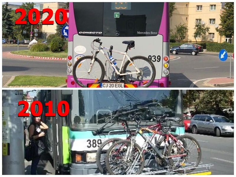 Inovația, în 2020, este că suporturile pentru bicicletele sunt în spatele autobuzelor. Întrebarea este: ”Câți bicicliști îl vor atenționa pe șofer să aștepte până când ei își vor asigura bicicleta pe suport, iar apoi la coborâre vor repeta procesul?”. A doua întrebare este cine va răspunde dacă bicicleta pică în trafic sau autobuzul este lovit din spate de ale șofer?
