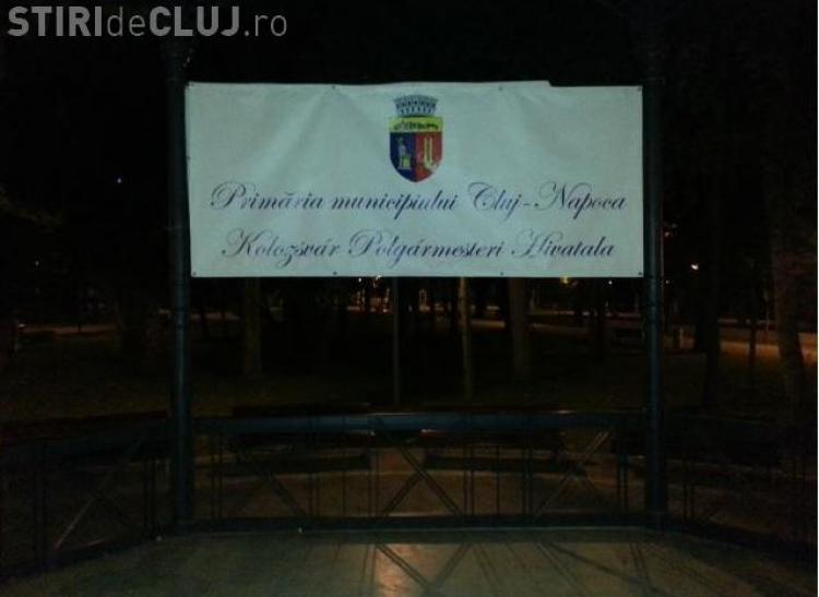 Gruparea MOST-ACUM a înlocuit un banner din Parcul Central, de la foișorul unde sunt oficiale căsătoriile, cu altul pe care numele Primăriei Cluj-Napoca era scris și în limba maghiară.