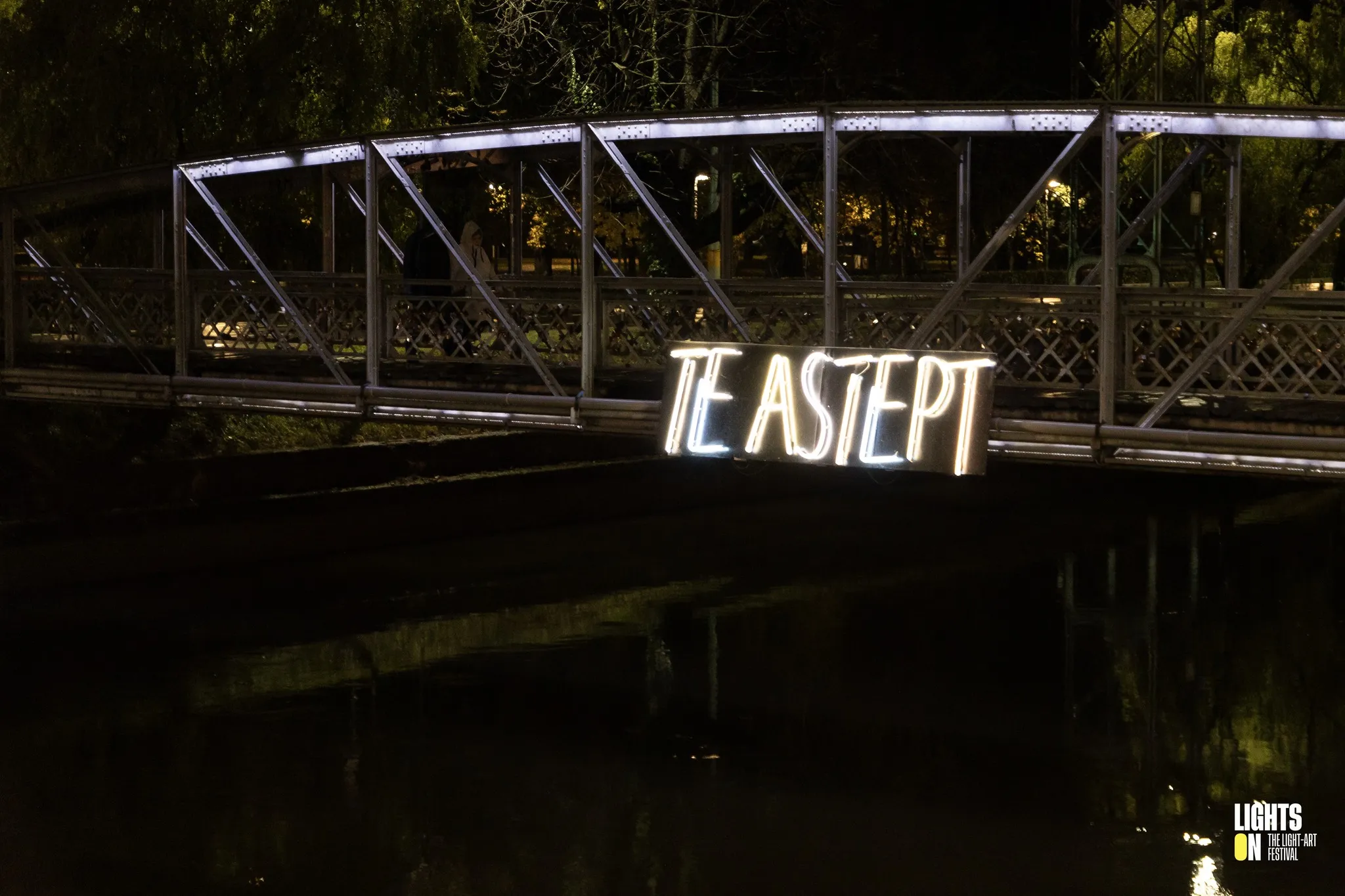Instalația luminoască cu mesajul ”Te aștept” de pe podul Elisabeta, din Cluj-Napoca, a fost aruncată de persoane necunoscute în Someș.