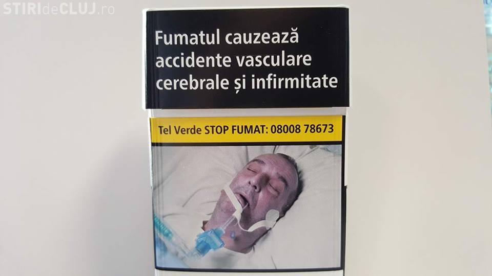 Pe pachetele de ţigări apare fotografia unui bărbat intubat.