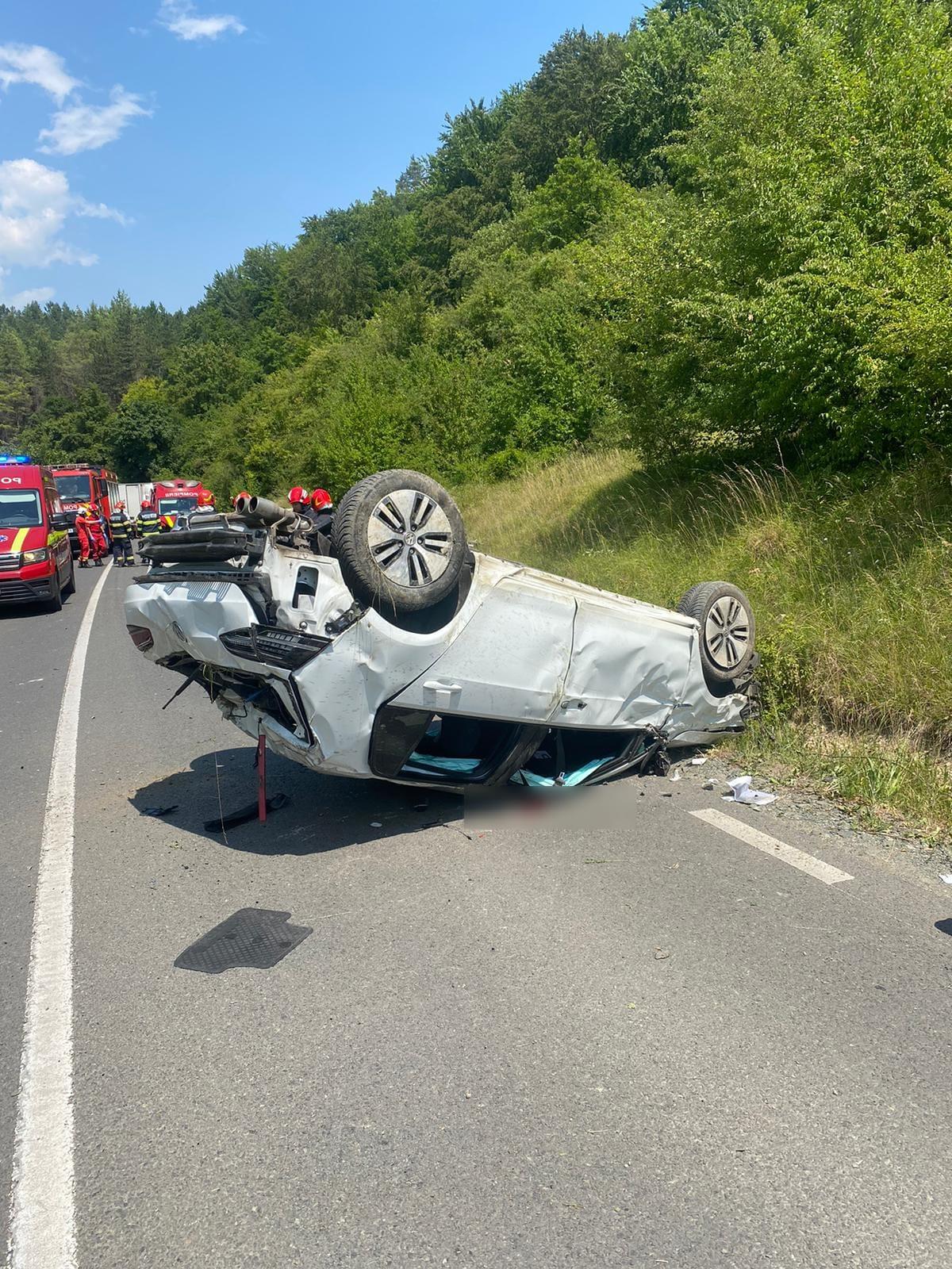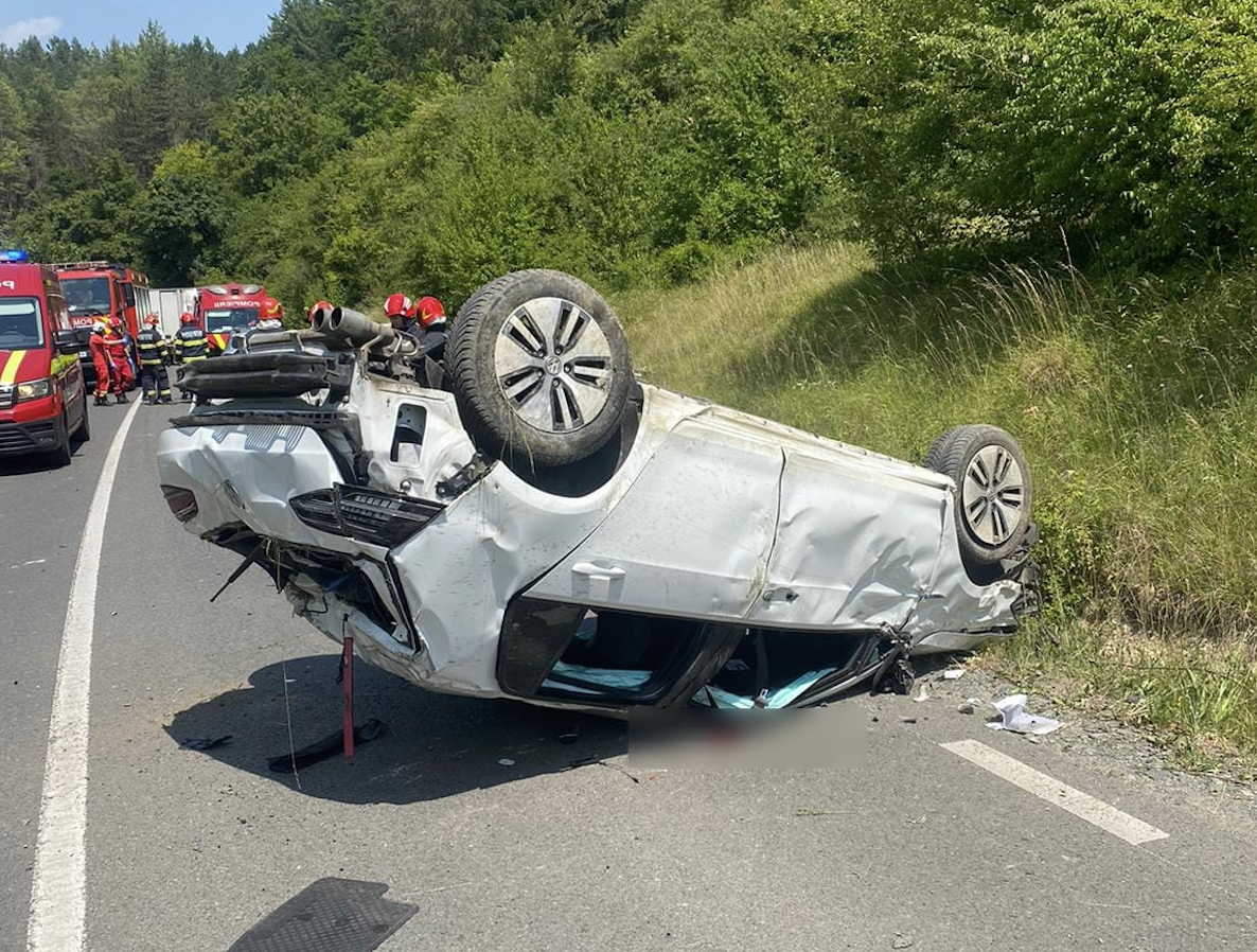 Forțele noastre au ajuns la fața locului și au găsit un autoturism răsturnat. În interior se află o victimă încarcerată. Din primele date, aceasta este inconștientă. Pompierii lucrează pentru extragerea persoanei.