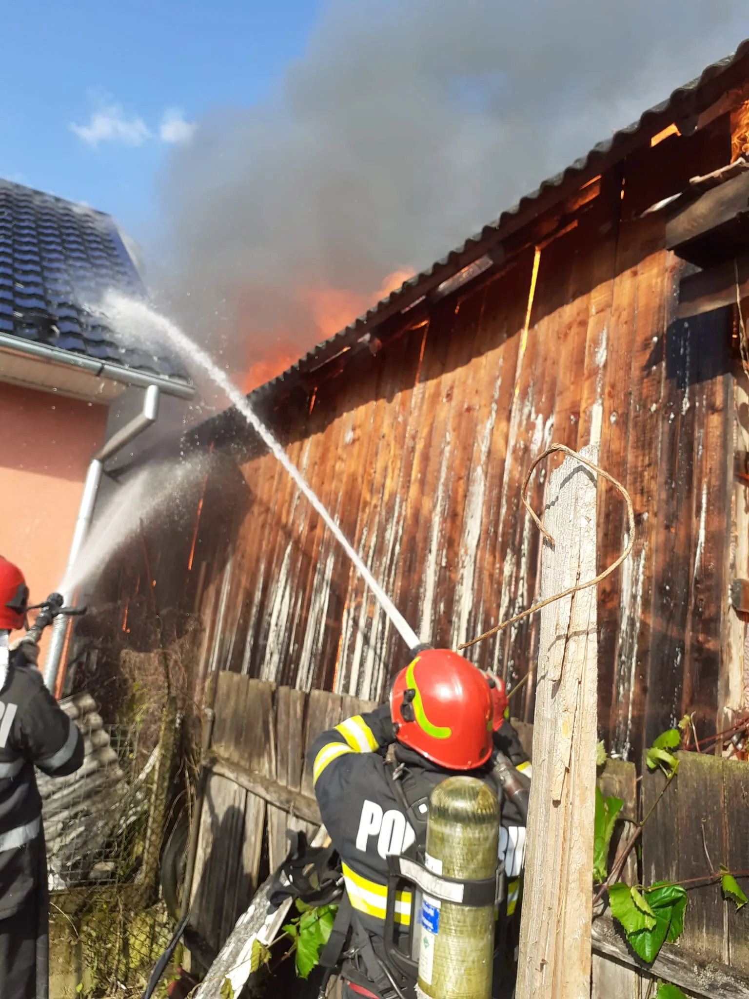 Intervenție salvatoare de Rusalii din partea pompierilor clujeni. Au sărit să stingă flăcările care au cuprins o casă și mai multe anexe gospodărești