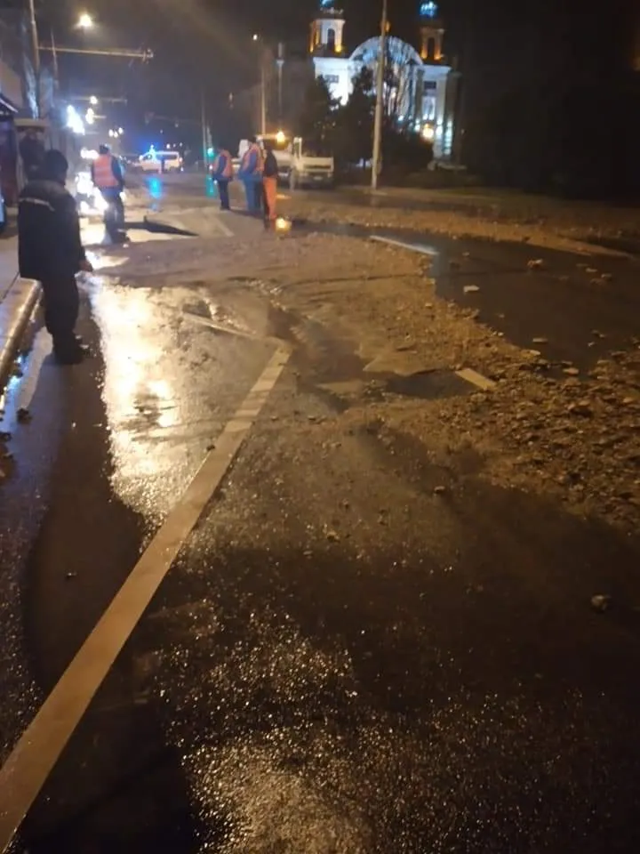 In fata Regionalei CFR Cluj, era un lac de apa, iar asfaltul a fost distrus în urma avariei și a apei care a inundat drumul.