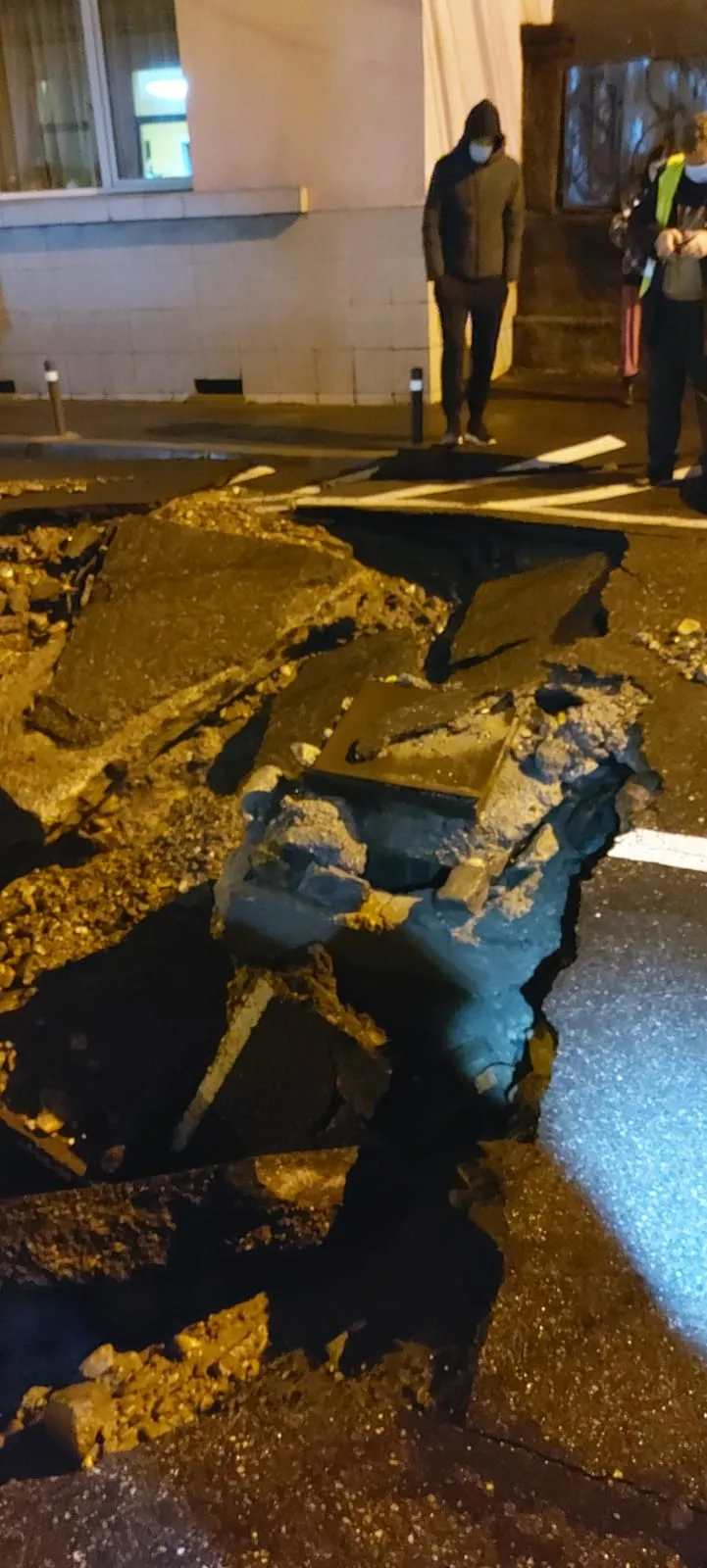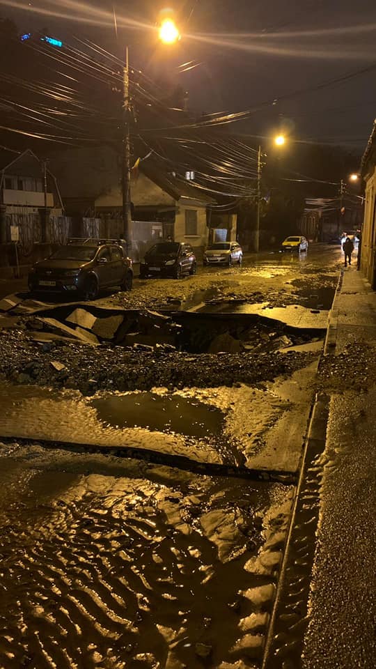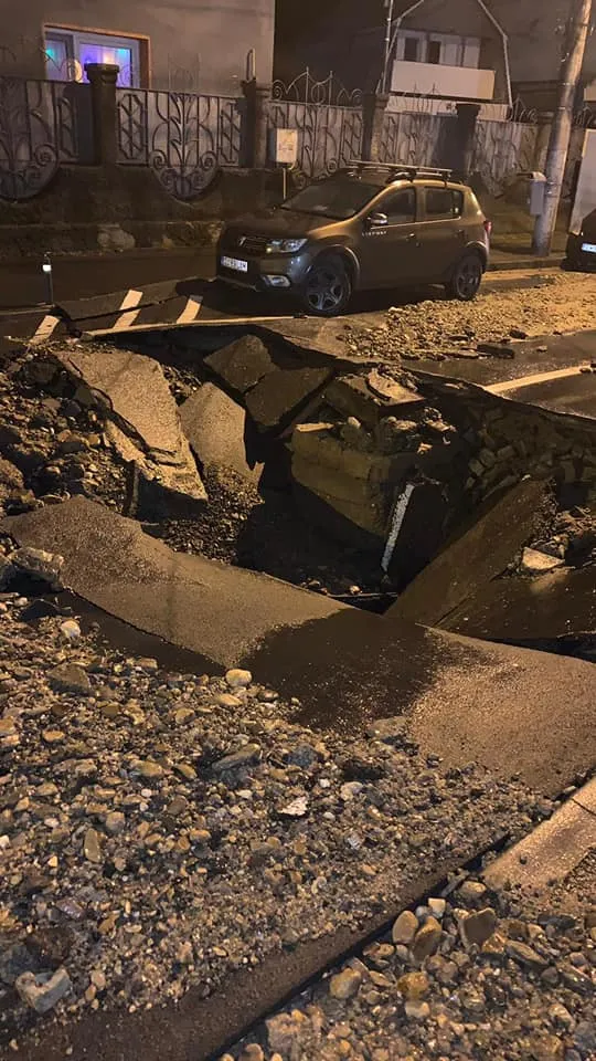 Alimentarea cu apă a fost oprită, iar în urmă a rămas un adevărat ”teatru de război”. Strada părea bombardată. Șoferul care a trecut pe acolo a avut noroc că nu s-a scufundat cu tot cu mașină în groapa creată de spargerea conductei de apă.