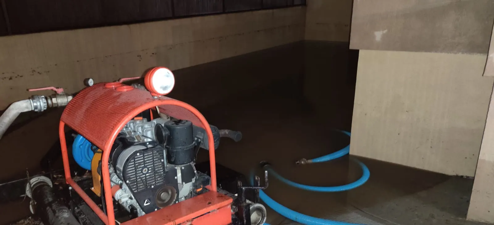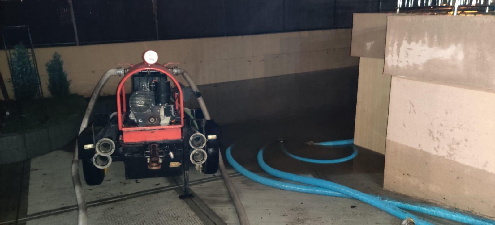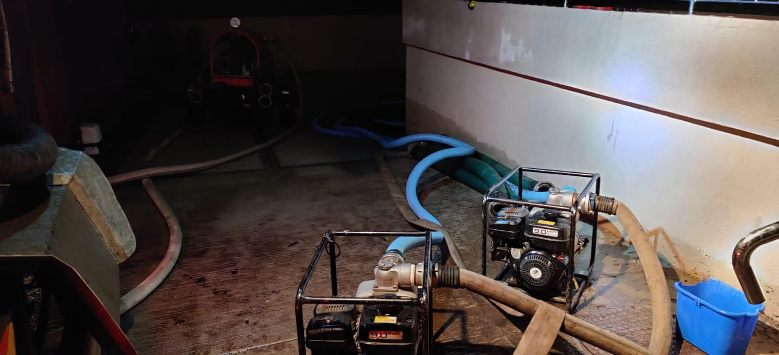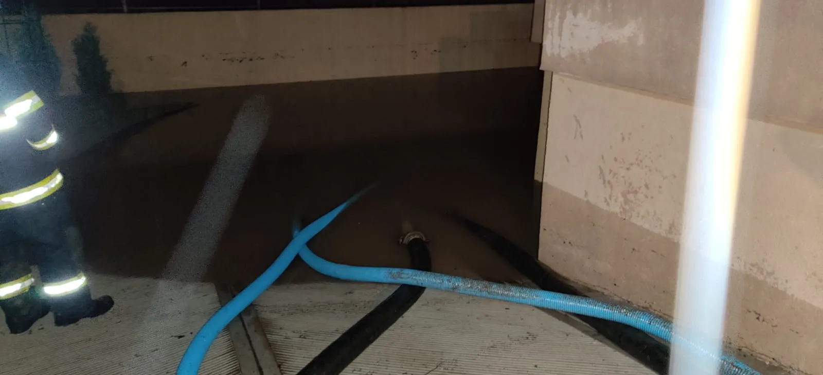 Echipajele de pompieri au intervenit, pe parcursul întregii nopți, cu două autospeciale, două motopompe remorcabile și patru motopompe transportabile pentru a evacua apa din spațiile inundate, astfel încât au fost eliberate de apă până la primele ore ale dimineții. Intervenția pompierilor a fost sprijinită de două autocisterne, dotate cu motopompe, ale furnizorului de utilități. De asemenea, o echipă a furnizorului de utilități desfășoară lucrări pentru reparația magistralei și reluarea furnizării de apă potabilă în zonă.