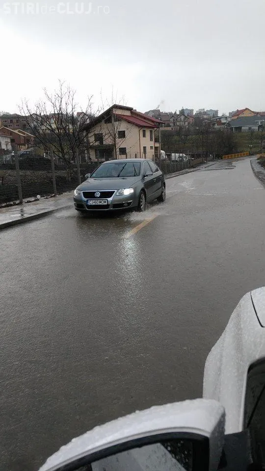 Apa s-a adunat pe șoseaua proaspăt asfaltată, iar canalizarea nu a mai făcut față.