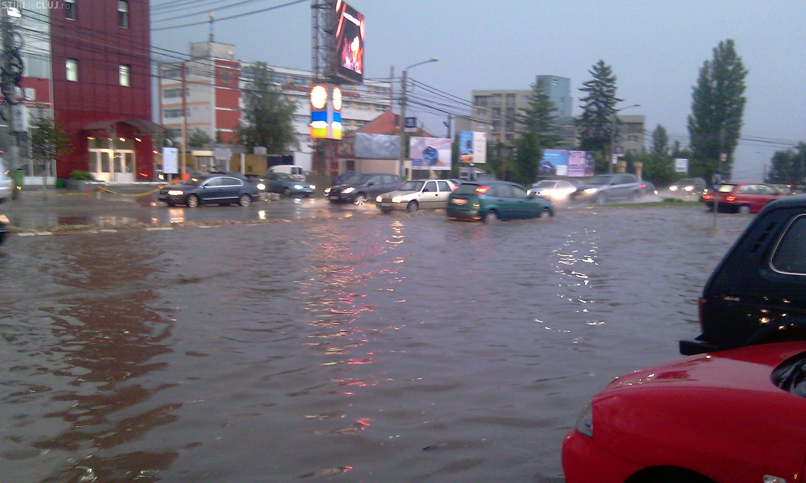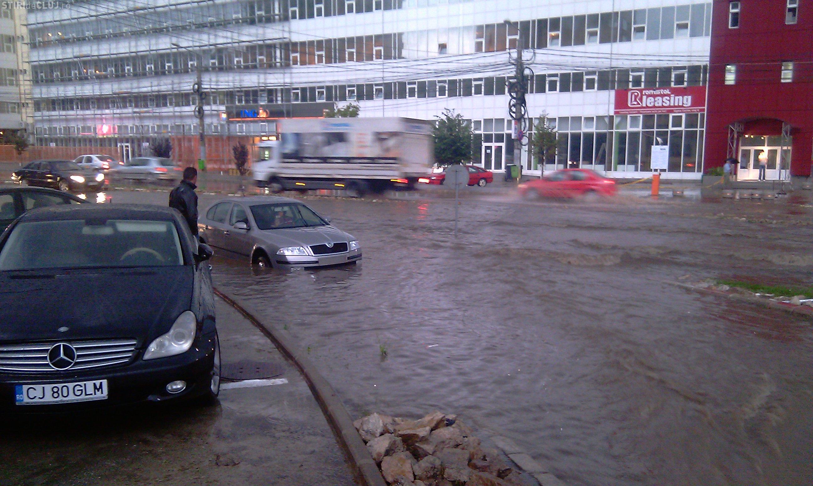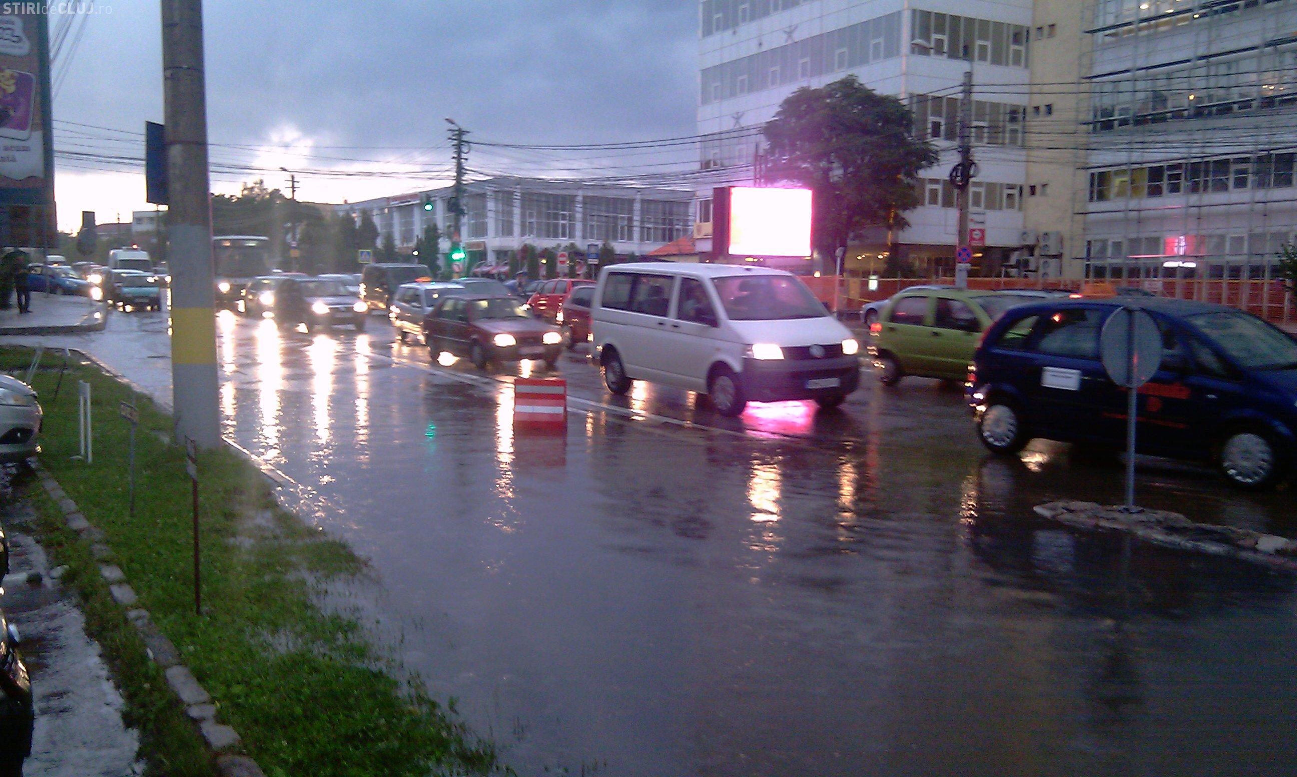 Inundatii in cartierul Zorilor! Strada Observator acoperita de apa la intersectia cu Meteor si Calea Turzii- VIDEO si FOTO