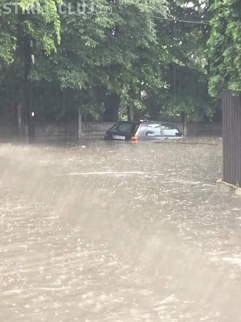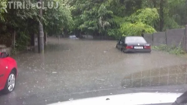 INUNDAȚII la Cluj-Napoca. Mașinile au fost acoperite de apă - FOTO