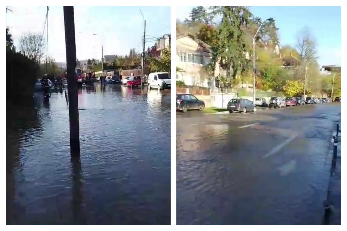 Inundații pe o stradă din Cluj-Napoca după ce o conductă subterană a fost avariată - VIDEO