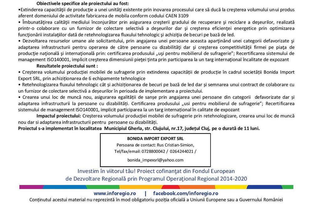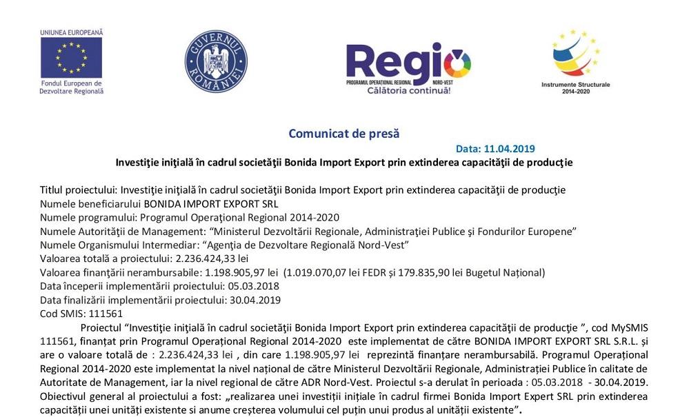 Investiţie iniţială în cadrul societăţii Bonida Import Export prin extinderea capacităţii de producţie