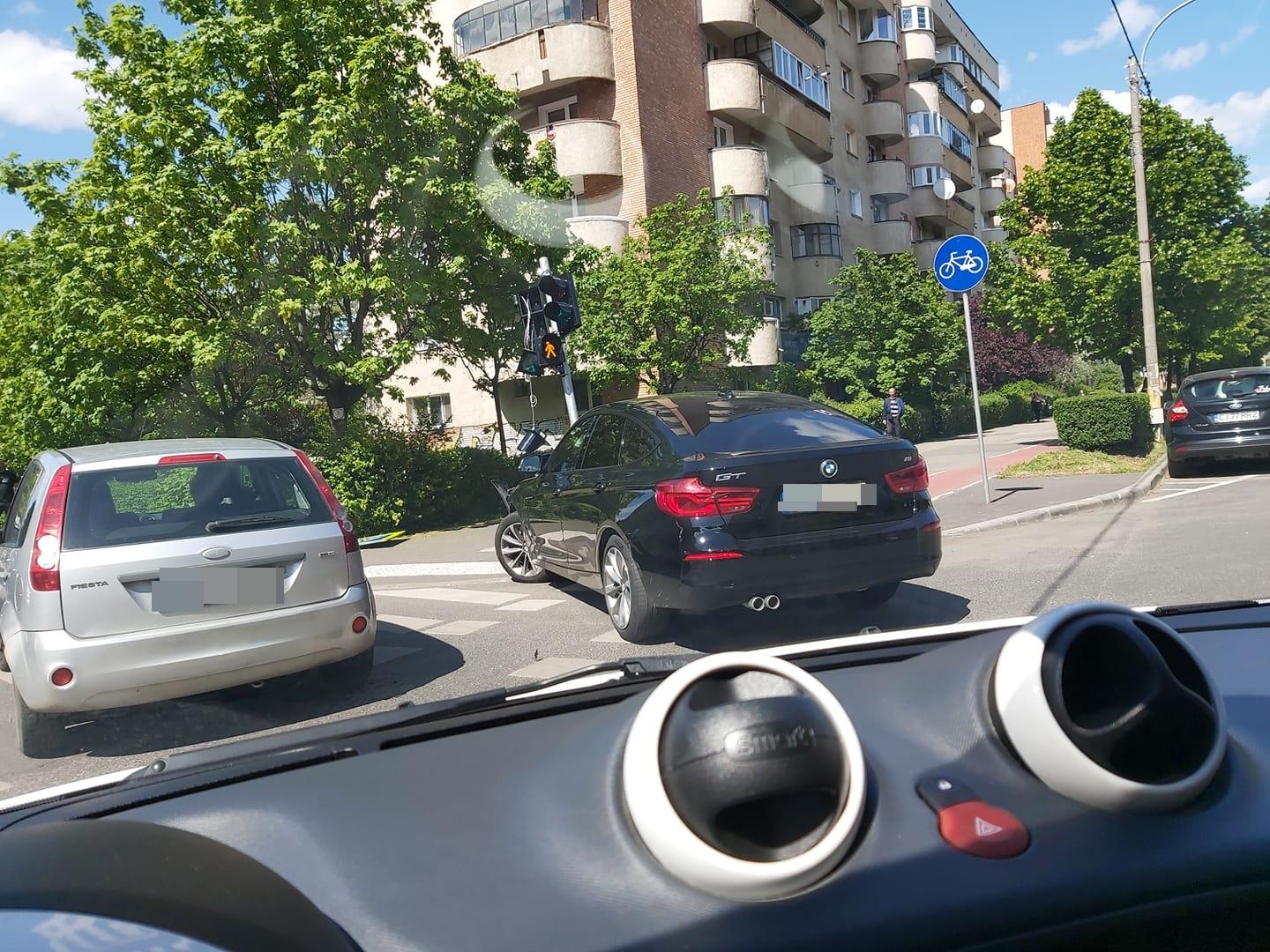 Ironii fine din partea clujenilor, la adresa unui șofer de „BMW cu apucături de taur”, care s-a izbit violent într-un semafor de pe Calea Dorobanților