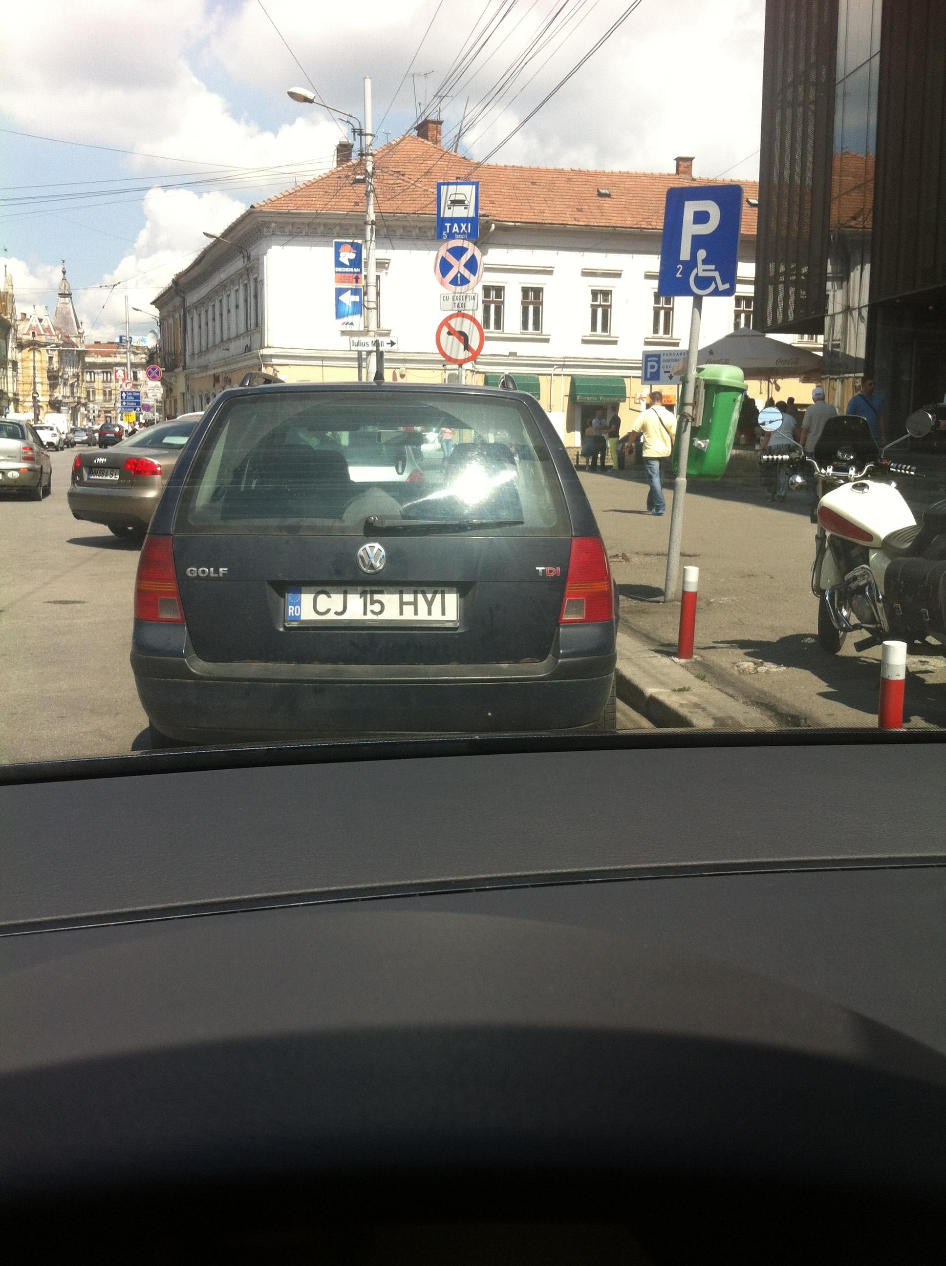 Cititorul Știri de Cluj a filmat și ecusonul din bordul autoturismului, care atestă faptul că autoturismul are dreptul să fie parcat pe locul pentru persoane cu handicap.